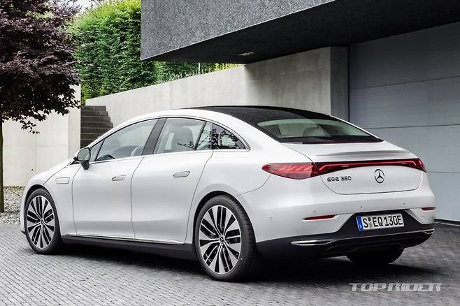 EQE 350+에는 90.6kWh 용량의 배터리가 얹어졌다. 1회 완충시 국내 주행거리는 471km로 인증을 완료했다. 170kW급 초급속 충전을 지원해 배터리 10->80% 충전까지 약 31분이 소요된다. EQE 350+는 후륜구동으로 최고출력 288마력, 최대토크 57.6kgm의 성능을 낸다.