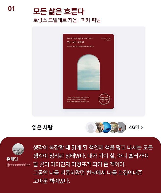 내가 가야 할, 아니 흘러가야 할 곳이 어디인지 이정표가 되어 준 책이다.