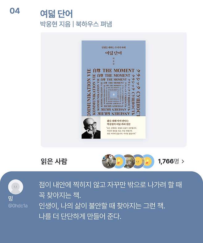그동안 나를 괴롭혀왔던 번뇌에서 나를 끄집어내준 고마운 책이었다.