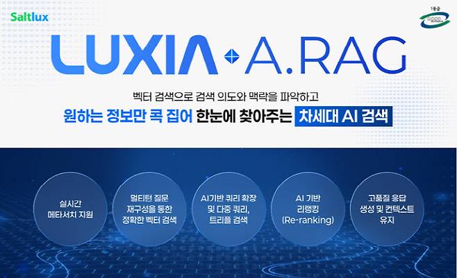 인공지능 전문기업 솔트룩스(304100)는 에이전틱 AI 검색 솔루션 '루시아 A.RAG'가 한국정보통신기술협회로부터 GS(Good Software) 인증 1등급을 획득했다고 28일 밝혔다.