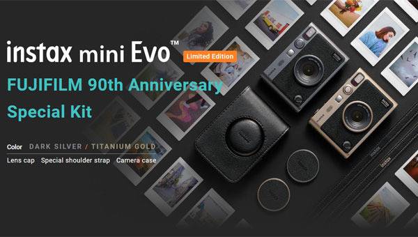 '인스탁스 미니 에보 후지필름 90주년 기념 특별판(instax mini Evo FUJIFILM 90th Anniversary Special Kit)'은 후지필름 그룹 창립 90주년을 기념해 전세계 3만대 한정으로 판매되며, 카메라 본체는 티타늄 골드와 다크 실버 2가지 색상으로 나오고 본체 디자인에 어울리는 카메라 케이스가 동봉된다.