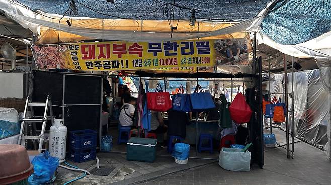 아무튼 약한 자는 버티기 힘들다는 모란시장 돼지부속 무한리필집.