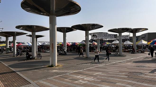 안쪽으로 와보면 뭔가 테이블과 좀 더 단단한(?) 지붕이 있는 식당가 비슷한 곳이 나옵니다.