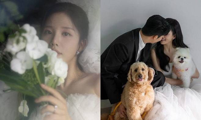 공개된 사진 속 이주리는 사랑스러운 미소로 예비신랑과 다정한 포즈를 취하고 있다. 순백의 드레스 자태는 우아하면서도 단아했으며 반려견과 함께한 컷에서는 따뜻한 가족의 분위기를 물씬 풍겼다.