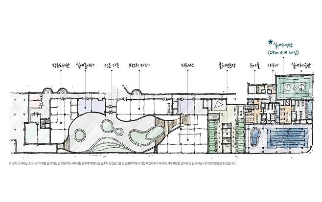 또한, 피트니스 시설은 물론, 골프연습장, 대형 선큰 가든, 브런치 카페 등도 계획되어 단지 내에서 모임, 휴식까지 한 번에 해결할 수 있다. 날씨와 상관없이 운동을 즐길 수 있는 다목적 실내체육관도 갖췄으며, 유아 풀장, 작은도서관, 실내놀이터 등 아이들을 위한 공간도 다양하게 마련했다.