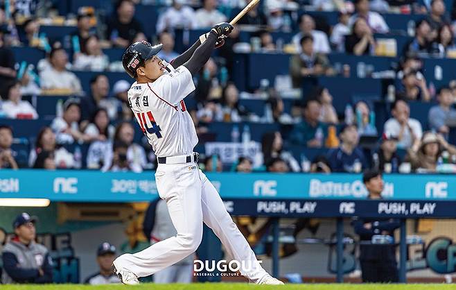 사실 키움 히어로즈에 있을 때도 창원에서 홈런이 없다는 걸 스스로 인지하고 있었거든요. 유독 NC를 상대로 어려움을 느끼기도 했고… 그래서 창원에 대한 기억이 좋지 않았는데, 고척 스카이돔에 비해서 창원NC파크가 담장까지의 거리도 가깝고 확실히 타자 친화적인 느낌이 있더라고요. 게다가 최근에 창원에서 시합을 자주 하다 보니 공도 잘 보이는 느낌이고, 오히려 홈경기를 자주 하고 싶어요. 창원이 제일 편합니다!