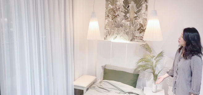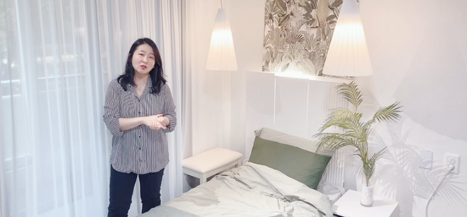 호텔에 가서 침대에 누우면 정말 포근하다고 느끼실 텐데요. 그 이유는 침구를 잘 활용했기 때문입니다. 일단 배치를 잘 봐야 하는데요. 베개의 경우 1인 기준 베개는 2개, 2인 기준 베개는 4개 이상을 두는 것을 추천드려요. 훨씬 더 포근한 느낌을 연출할 수 있어요. 또 하나는 침구의 소재인데요. 60수에서 80수 침구를 선택하신다면 부드러우면서도 바스락거리는 느낌을 받을 수 있습니다.