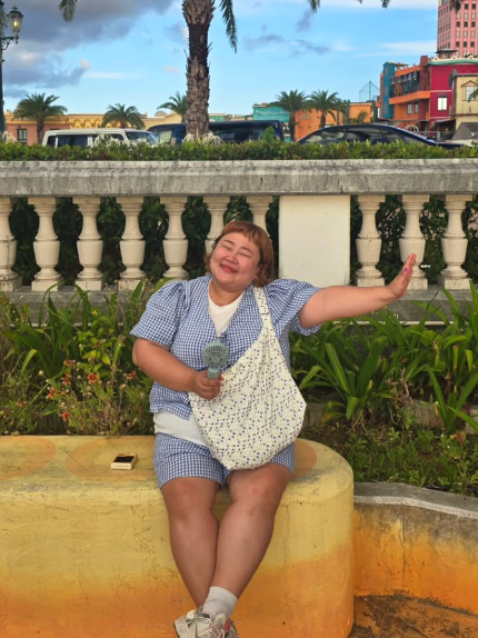 사진 속 인물은 파스텔 톤의 조명을 배경으로 한 야외 공간에서 내추럴하면서도 생기 넘치는 스타일을 완성해 시선을 끌었다.