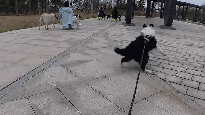 강아지의 넘치는 에너지를 이렇게 유쾌하게 활용하는 방법이라니, 정말이지 기발한 아이디어입니다.