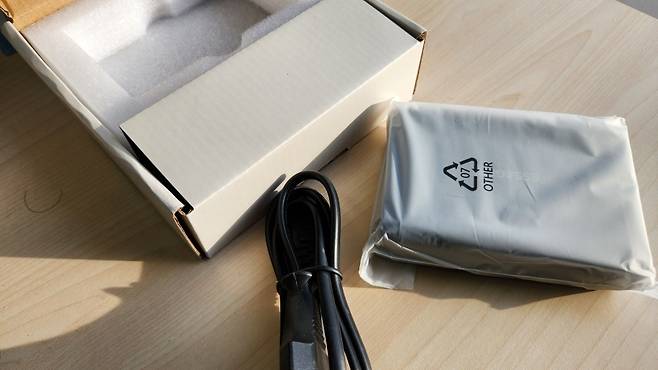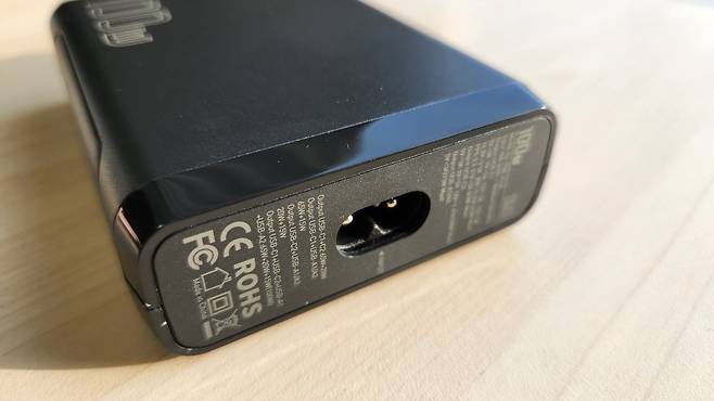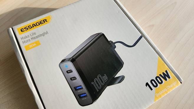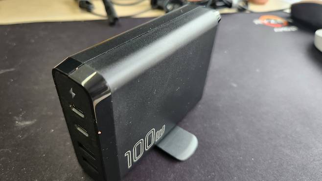 대부분의 충전기가 그렇듯 평범한 디자인입니다. 100W 4포트 치고는 크기는 적당합니다. 책상 위에 놓고 쓰기 딱 좋은 크기와 디자인입니다. 걱정했던 케이블은 한국형 케이블이라 큰 문제없이 쓸 수 있습니다.