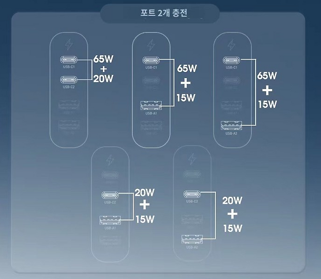 - 출력 USB-C1 : 5V/3A, 9V/3A, 12V/3A, 15V,3A (최대 65W)