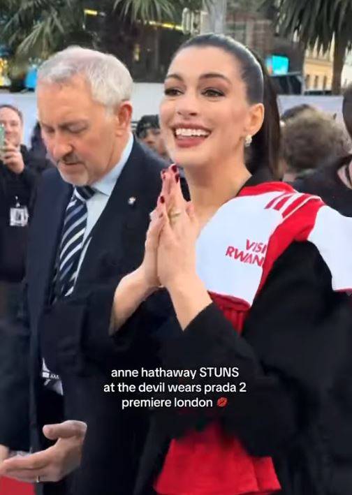 영국 매체 '컷오프사이드'는 25일(한국시간) "헤서웨이가 영화 '악마는 프라다를 입는다 2' 런던 프리미어 행사에서 아스널 유니폼을 어깨에 걸친 채 등장해 눈길을 끌었다"고 보도했다.