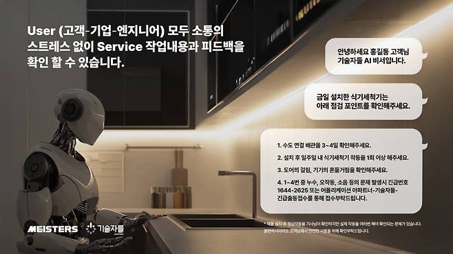 AI는 불미스러운 마찰을 없애는데도 도움이 된다. “TV 타공 설치 상황을 가정할게요. 엔지니어가 현장에서 서비스 유형을 선택하면 소비자에게 알림이 갑니다. 소음이 발생할 수도 있으니 아이나 애견이 있다면 다른 방으로 이동하라고요. 추가 비용 발생 시 엔지니어는 불편한 사항을 직접 말할 필요가 없어요. 동의서가 문자로 갔으니 확인해달라는 부탁만 하면 되죠. 작업 퀄리티가 떨어지거나 기물 파손 발생 시 저희가 책임집니다. 해당 엔지니어에겐 불편 사항에 비례해 페널티가 부과되고요. 엔지니어는 단계별 의무 이행 상황에 체크했기 때문에 페널티를 받아도 우길 수가 없습니다. 모든 내역이 히스토리로 기록되니까요.”