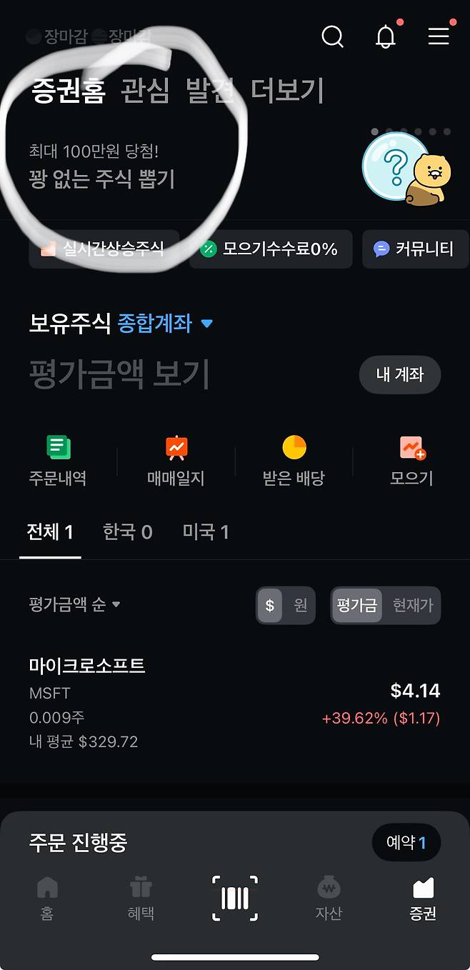 위치는 카카오페이-하단증권탭-상단배너 첫번째입니다
