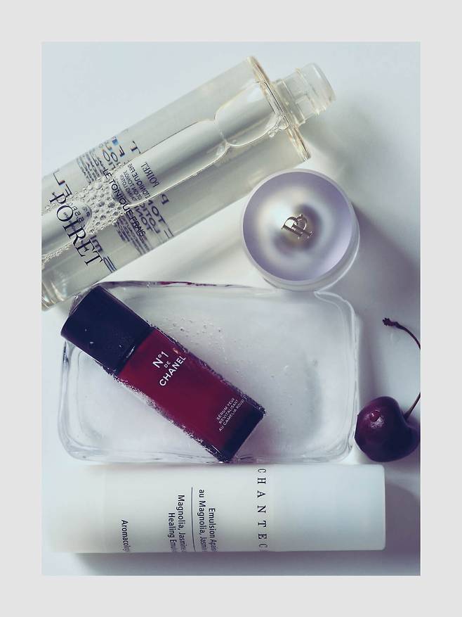 위부터 POIRET 르 토니끄 프레 자작나무와 율무 추출물이 피부를 빠르게 진정시키고, 흐트러진 피부 밸런스를 되찾아준다. CHANEL N°1 DE CHANEL 레드 까멜리아 아이 세럼 혁신적 쿨링 애플리케이터가 눈가를 부드럽게 마사지해 열감을 케어하고, 레드 까멜리아 성분이 피부 노화 징후를 완화한다. CHANTECAILLE 매그놀리아 자스민 앤 릴리 모이스처라이저 민감한 피부를 위한 SOS 모이스처라이저. 재스민꽃 왁스와 재스민 오일을 비롯 풍부한 꽃 성분이 자극받은 피부를 진정시킨다.