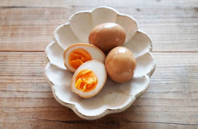 ❌ 그냥 삶은 계란 → 진간장, 물, 올리고당, 마늘을 섞어 만든 간장에 절이기