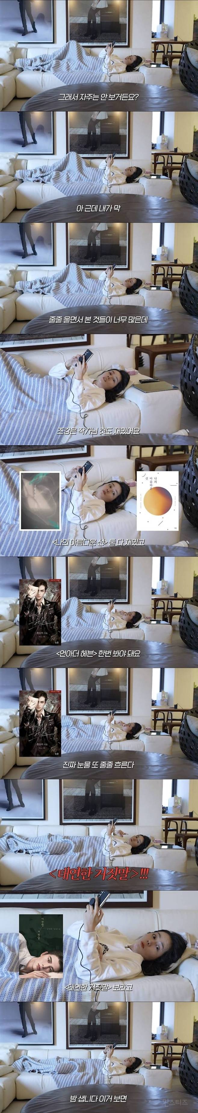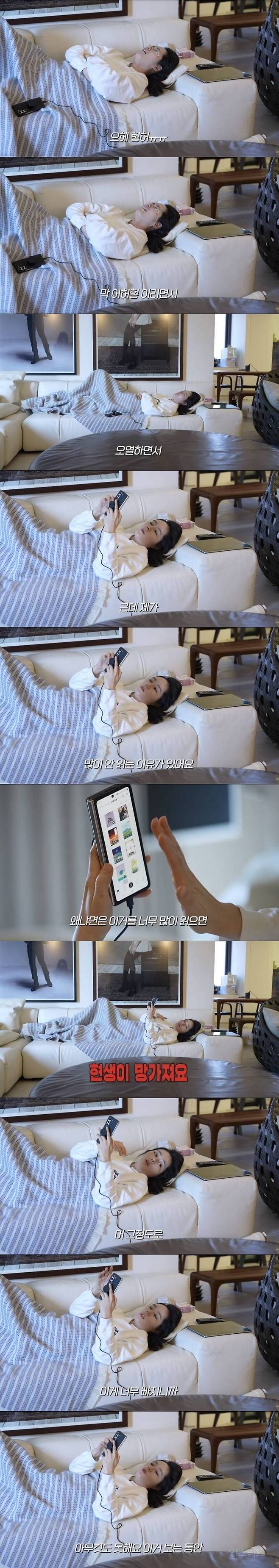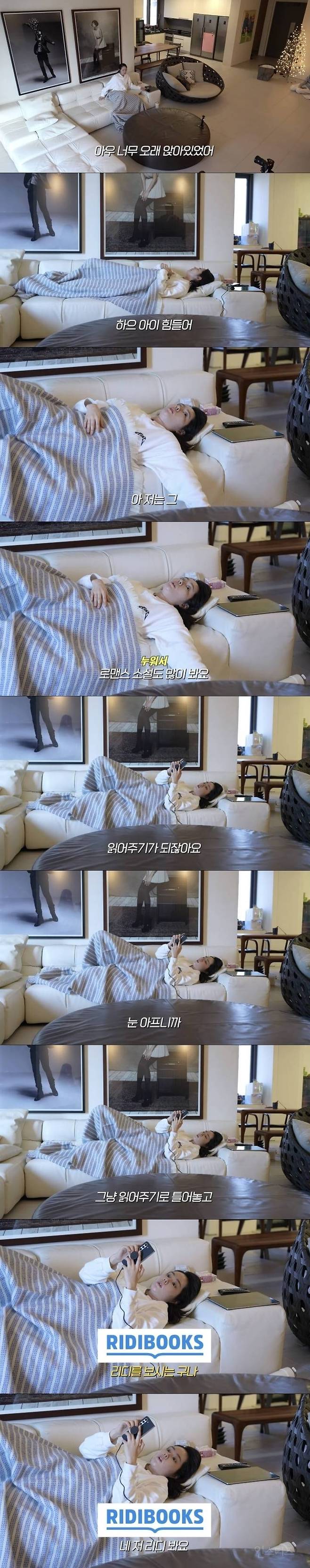 누워서 리디북스 보는 한가인