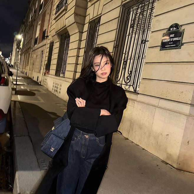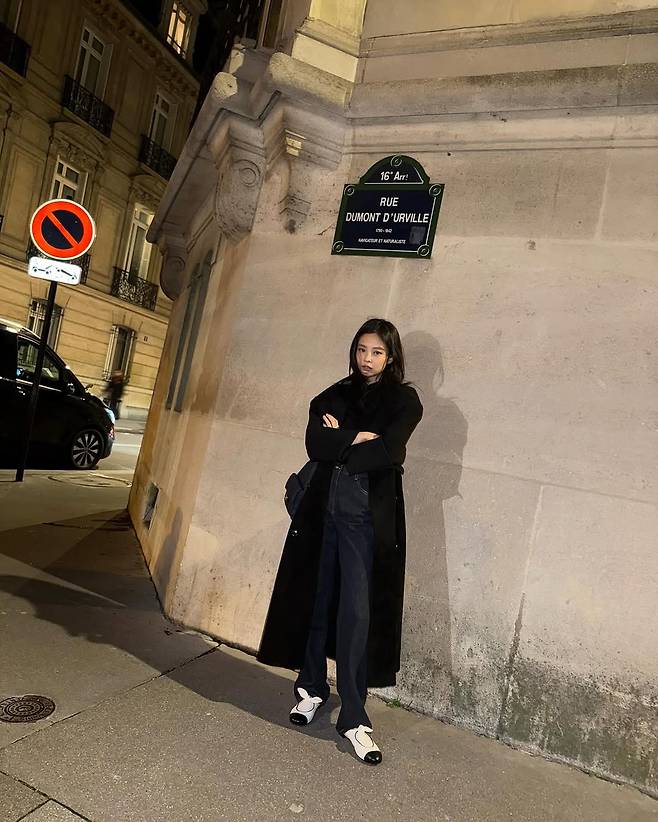 클래식한 샤넬 블랙 롱 코트를 베이스로