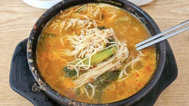 민물 생선을 갈아 만든 국물에 소면을 넣은 어탕국수. 걸죽하고 진한 국물맛이 특징이라고 해요. 김대호 아나운서는 어탕국수를 테이크 아웃해 자연을 벗삼아 먹었죠. 실제로는 테이크 아웃 후 한 번 끓여서 먹어야 한다고 하네요.