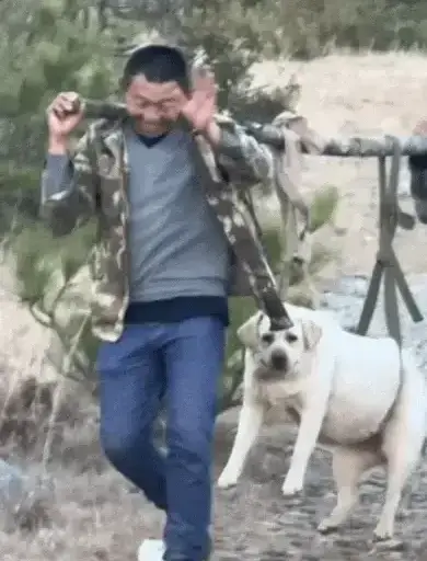 결국 견주는 강아지를 산 위로 옮기기 위해 무려 700위안(약 13만 5천 원)을 내고 등짐꾼 아저씨의 도움을 받았습니다!