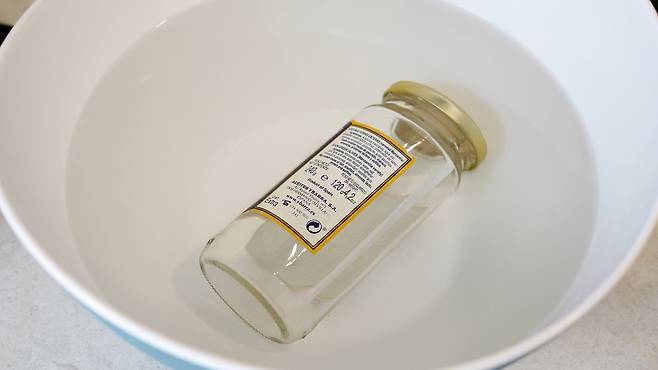 그럴 땐 먼저 따듯한 물을 받아 물속에 병을 담가 놓으세요. 유리병이 위로 떠오르면 물을 속에 받아 놓으면 된답니다. 약 15분 정도 담가 놓으면 종이가 충분하게 불어 나올 거예요.