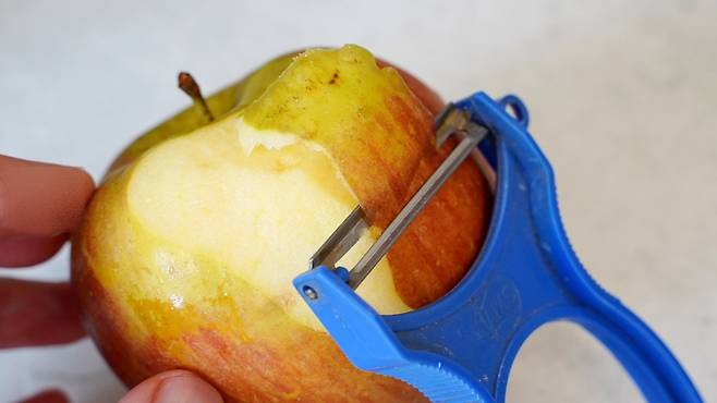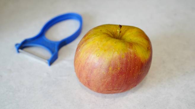 이렇게 감자 깎듯이 사과를 깎아 보았답니다. 결과는 대성공! 아주 쉽고 빠르게 껍질을 제거할 수 있었어요.