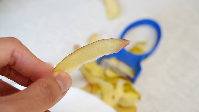 과일을 깎을 때 칼로만 자르고 계셨나요? 칼로 잘라도 좋지만 껍질이 두껍게 썰리게 되는데요. 감자칼을 이용하면 껍질도 얇고 아주 쉽게 자를 수 있어요.