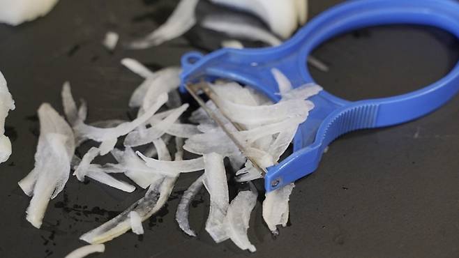 양파, 오이, 감자 등 아주아주 얇게 썰어야 할 때, 그냥 칼로 자르면 정말 쉽지 않아요.