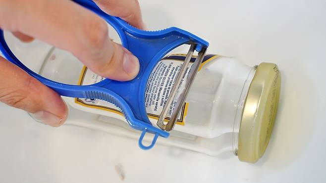 그리고 스티커를 감자칼로 감자 깎듯이 해주면 아주 손쉽게 떨어지는 것을 볼 수 있답니다.