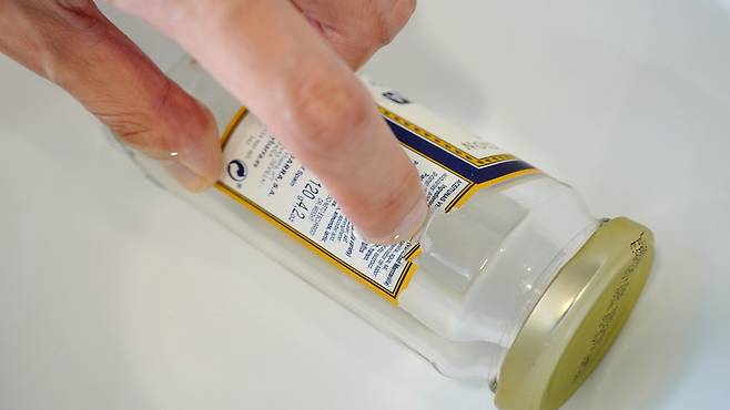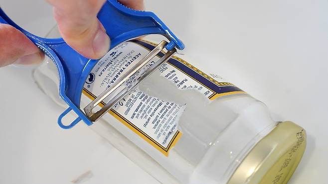 유리병에 붙은 스티커! 잘 떨어지지도 않고 자국이 남아 불편한데요. 그래서 그냥 그대로 두고 사용하시는 분들도 계실 것 같아요.