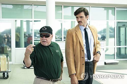 This image released by Kino Lorber shows filmmaker Paul Schrader, left, with actor Jacob Elordi on the set of "Oh, Canada." (Jeong Park/Kino Lorber via AP) AP PROVIDES ACCESS TO THIS THIRD PARTY PHOTO SOLELY TO ILLUSTRATE NEWS REPORTING OR COMMENTARY ON FACTS DEPICTED IN IMAGE; MUST BE USED WITHIN 14 DAYS FROM TRANSMISSION; NO ARCHIVING; NO LICENSING; MANDATORY CREDIT
