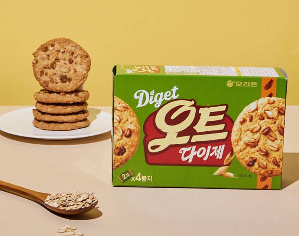 오리온은 귀리를 쿠키로 간편하게 즐길 수 있는 ‘오트 다이제’를 출시했다. 오트 다이제는 백미 대비 칼슘 8배, 식이섬유 4배, 단백질 1.5배 등 풍부한 영양소를 함유한 오트를 22.5% 넣고 통밀을 더해 고소한 맛과 영양까지 강화한 제품이다. 롤드오트, 퍼핑오트, 퀵오트 등 3가지 오트를 최적의 비율로 조합하고, 로스팅오트를 토핑해 수제 쿠키와 같은 맛과 식감을 구현했다. 대형마트 기준 패키지 하나의 판매가는 2,680원이다.