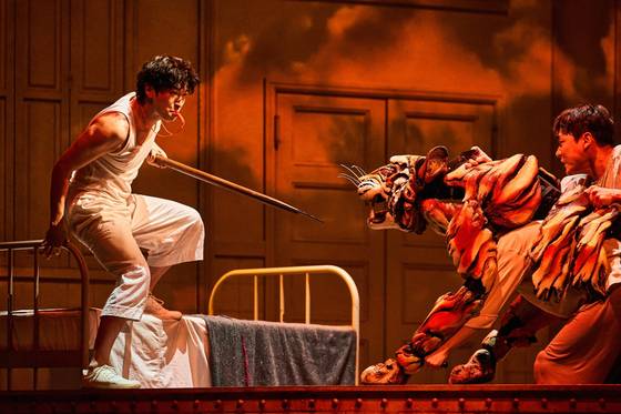 태평양 한가운데에 남겨진 파이와 벵골 호랑이 리처드 파커의 227일간의 대서사시를 담은 '라이프 오브 파이' 한국 초연은 2026년 3월 2일까지 GS아트센터에서 공연된다.