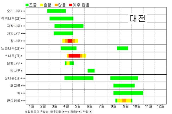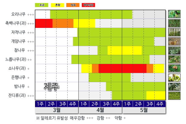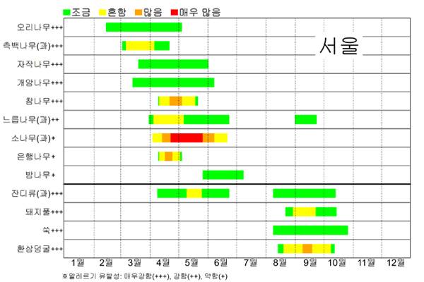 물론 모든 꽃이 다 알레르기를 유발하지는 않아요. 그래서 어떤 식물이 언제 꽃가루 알레르기를 일으키는지 알리기 위해 19년에 기상청과 국립기상과학원이 꽃가루 달력을 만들었어요. 달력에 의하면 지금 서울에서는 측백나무, 오리나무, 자작나무의 꽃가루가 나오기 시작했어요. 이 밖에도 국립기상과학원 웹사이트에서 제주, 강릉, 전주, 대전 등의 월별 꽃가루 달력을 공개했으니 관심 있는 단원님은 살펴보세요.