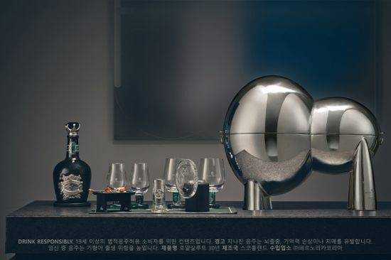 이날 눈길을 끌었던 것은 양태오 작가와의 협업으로 선보인 ‘로얄살루트 30년 스페셜 리추얼 키트’다. 위스키를 구성하고 있는 분자 구조를 형상화한 후, 크롬 메탈이라는 차별화된 소재를 적용해 예술적인 감각을 더했다. 양 작가는 로얄살루트의 럭셔리함을 담고 싶었다고 강조했다. 그는 “마시는 것도 좋지만, 분위기, 색, 향 등 다양한 것에 심취하여 30년산을 통해 느꼈던 오감에 하나하나 집중할 수 있는 그 경험을 전달하고 싶었다”라고 설명했다.