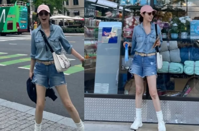 송윤아의 캐주얼한 청청패션