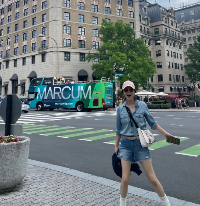 결혼식에서 송윤아는 캐주얼하면서도 세련된 스타일을 선보였습니다. 그녀는 청남방에 숏데님팬츠를 매치하여 청청패션을 완성했습니다. 여기에 핑크색 볼캡을 더해 캐주얼하면서도 러블리한 무드를 연출했습니다.