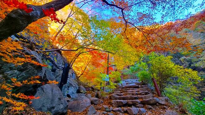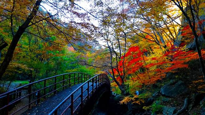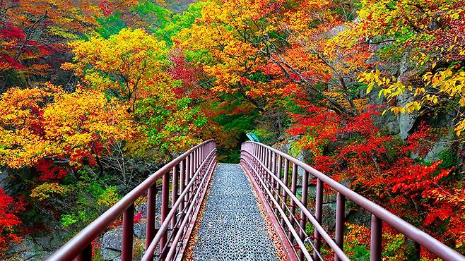 다리 위에서는 웅장한 폭포를 발아래 두고, 붉게 물든 계곡의 단풍을 한눈에 내려다볼 수 있다.