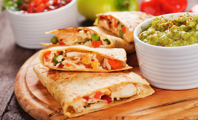 첫 번째로 소개할 메뉴는 닭고기 야채 케사디야다. 이 메뉴는 약 450칼로리로, 30g의 단백질을 함유하고 있어 포만감이 오래 지속되는 것으로 알려져 있다. 주 재료로는 통밀 또띠아, 닭가슴살, 저지방 치즈, 피망, 양파가 사용되며, 그릭 요거트나 살사 소스를 곁들이면 풍미를 더할 수 있다.