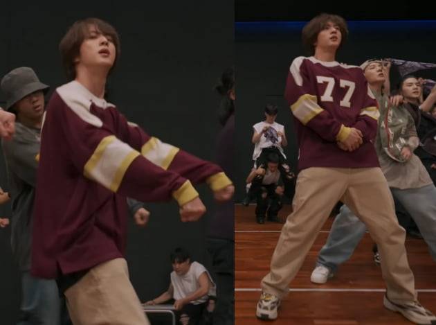 방탄소년단 진, '달려라 방탄' 안무영상에서 드러난 칼각 군무