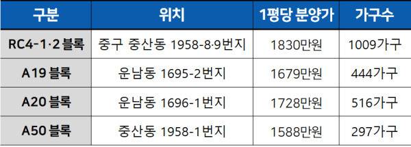 A50블록은 3년 전 주택건설사업이 한 차례 취소된 곳이다. 기존에는 명일건설이 우미린 3차를 분양할 계획이었지만, 고금리와 시장 침체가 겹치며 2022년 사업을 포기하고 토지를 LH에 반납했다. 이후 주은주택건설(대라수건설)이 지난해 다시 매입했으며, 지상 40층 규모 297가구의 아파트를 지을 계획이다. 중산동 1958-8·9번지에 위치한 RC4-1·2블록은 대방건설이 맡는다. 약 1009가구 규모의 주상복합 단지가 조성될 예정이다.