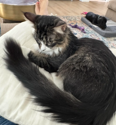 쿨롬브는 “처음엔 아주 겁이 많았지만, 이제는 내가 앉으면 무릎 위로 올라와 잔다”고 말했다. 그렘린은 여전히 낯선 소리에 민감하지만, 쿨롬브의 토끼와 다른 고양이들과도 잘 지낸다.