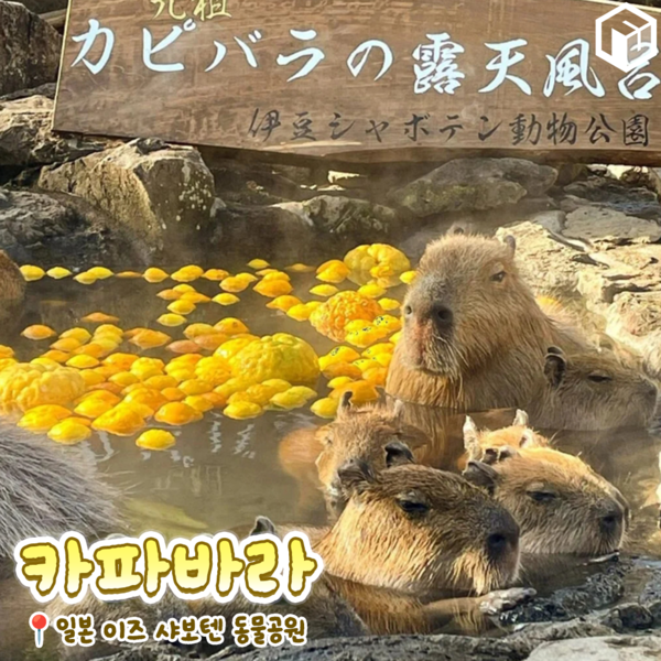 노천욕을 즐기는 카피바라를 만나볼 수 있는 일본 이즈 샤보텐 동물공원입니다. 다양한 동물과 선인장을 관람할 수 있는 테마파크인 이즈 샤보텐 동물공원은 겨울이면 독특한 풍경을 만나볼 수 있는데요.
