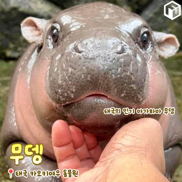 태국 인기스타인 아기 하마 무뎅을 만나볼 수 있는 태국 카오키여우 동물원입니다. 무뎅은 암컷 피그미하마로 성체의 몸무게가 보통 하마의 약 8분의 1 정도인 180∼280㎏에 불과한 작은 하마 종 중 하나라고 합니다.