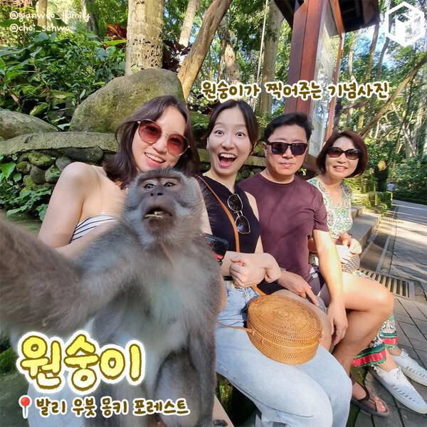 원숭이가 찍어 주는 독특한 경험을 할 수 있는 발리 우붓 몽키 포레스트입니다. 발리 우붓 몽키 포레스트는 , 평소 보기 힘든 여러 종의 원숭이들에게 먹이를 주며 가까이에서 만나볼 수 있는 관광지인데요.