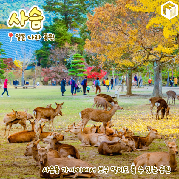 오사카 근교 약 12000마리의 사슴을 만날 수 있는 일본 나라 공원입니다. 아기 사슴부터 다 큰 사슴까지 사람 손을 타지않은 사슴을 직접 보고 교감할 수 있는 데요.