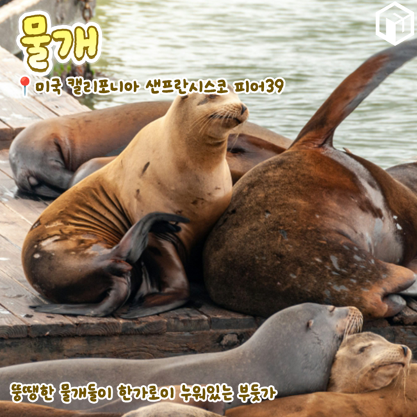 샌프란시스코는 바다사자들이 월동을 위해 내려가는 과정에서 잠시 쉬었다 가기에 딱 좋은 장소여서, 겨울철만 되면 부둣가에서 늘어지게 쉬고 있는 바다사자떼의 장관을 만나볼 수 있는 독특한 여행지입니다.