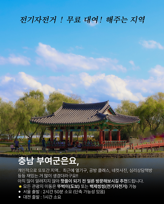 #백제씽씽 부여앱을 다운받아서 큐알코드로 대여 후 2시간 이내에 반납하면 또 2시간 이용이 가능해요.