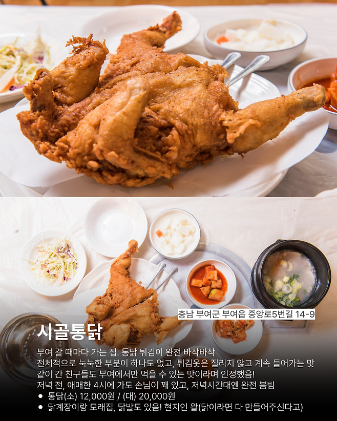 이 곳은 제가 제일 좋아하는 부여 맛집인데요, 옛 통닭과는 다르게 치킨옷이 두꺼운 편인데 모든 면이 바삭해서 너무 맛있어요. 치킨껍질을 과자처럼 먹어도 될 정도로 맛있어요.. 안에 속살도 맛있어요.