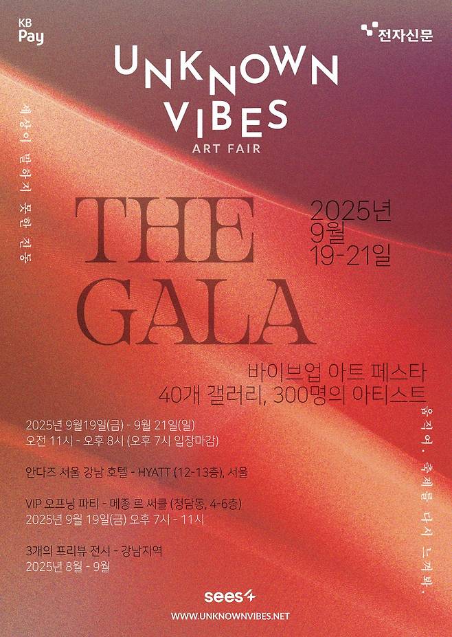 9월 19일부터 21일까지는 안다즈 서울 강남 호텔에서 <언노운바이브-더갈라(UNKNOWN VIBES - The GALA)> 아트페어가 열립니다.